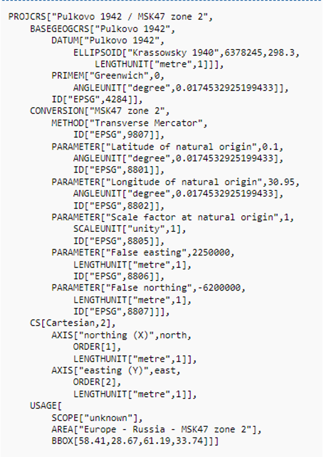 Эта организация в настоящее время называется The International Association of Oil & Gas Producers (IOGP). IOGP ведёт базу данных систем координат, которая в настоящее время является стандартом de facto в сфере ГИС. Поэтому часто вместо полного описания СК достаточно указать её EPSG-код, который являются её ключом в базе данных3.