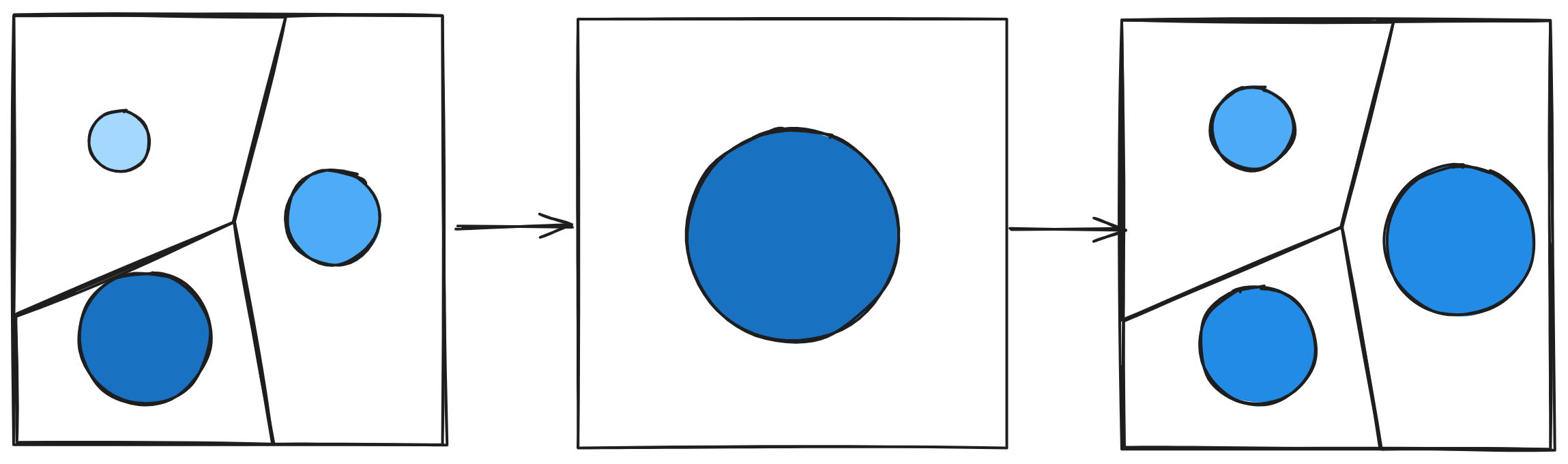 Ни одно из трех пространственных множеств объектов не имеет общих точек и пересечений.