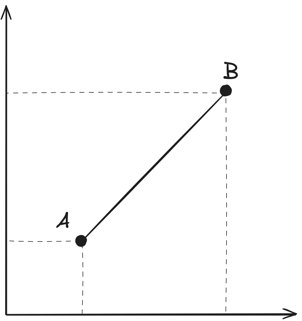 \[ d\:(A,B)=\sqrt{(X_B-X_A)^2+(Y_B-Y_A)^2} \]