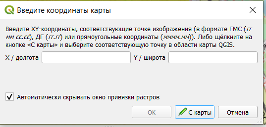 Чтобы поставить контрольную точку, нужно щелкнуть на нее в окне привзяки на растре, а далее указать ее координаты в диалоговом окне.