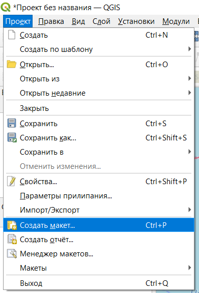 Более предпочтительным методом публикации являются макеты, которые сохраняются как часть проекта и позволяют кастомизировать результат публикации. Создание макета происходит через строку меню Проект \(\longrightarrow\) Создать макет.