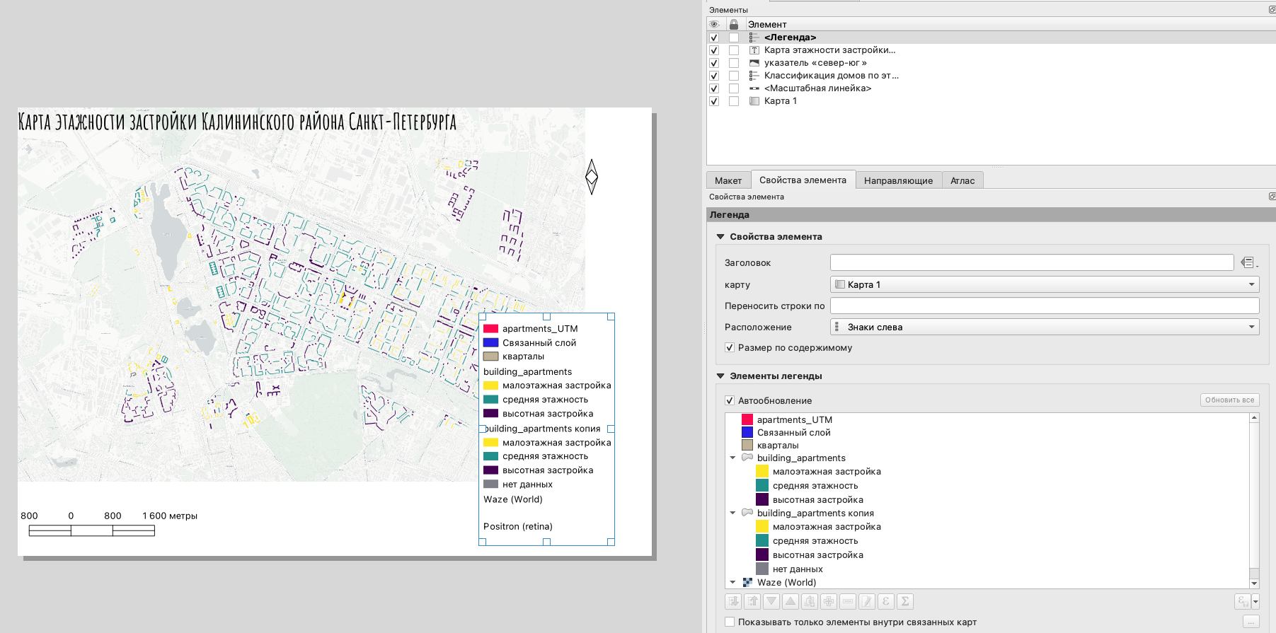 Добавим на карту легенду, с помощью кнопки Добавить Легенда