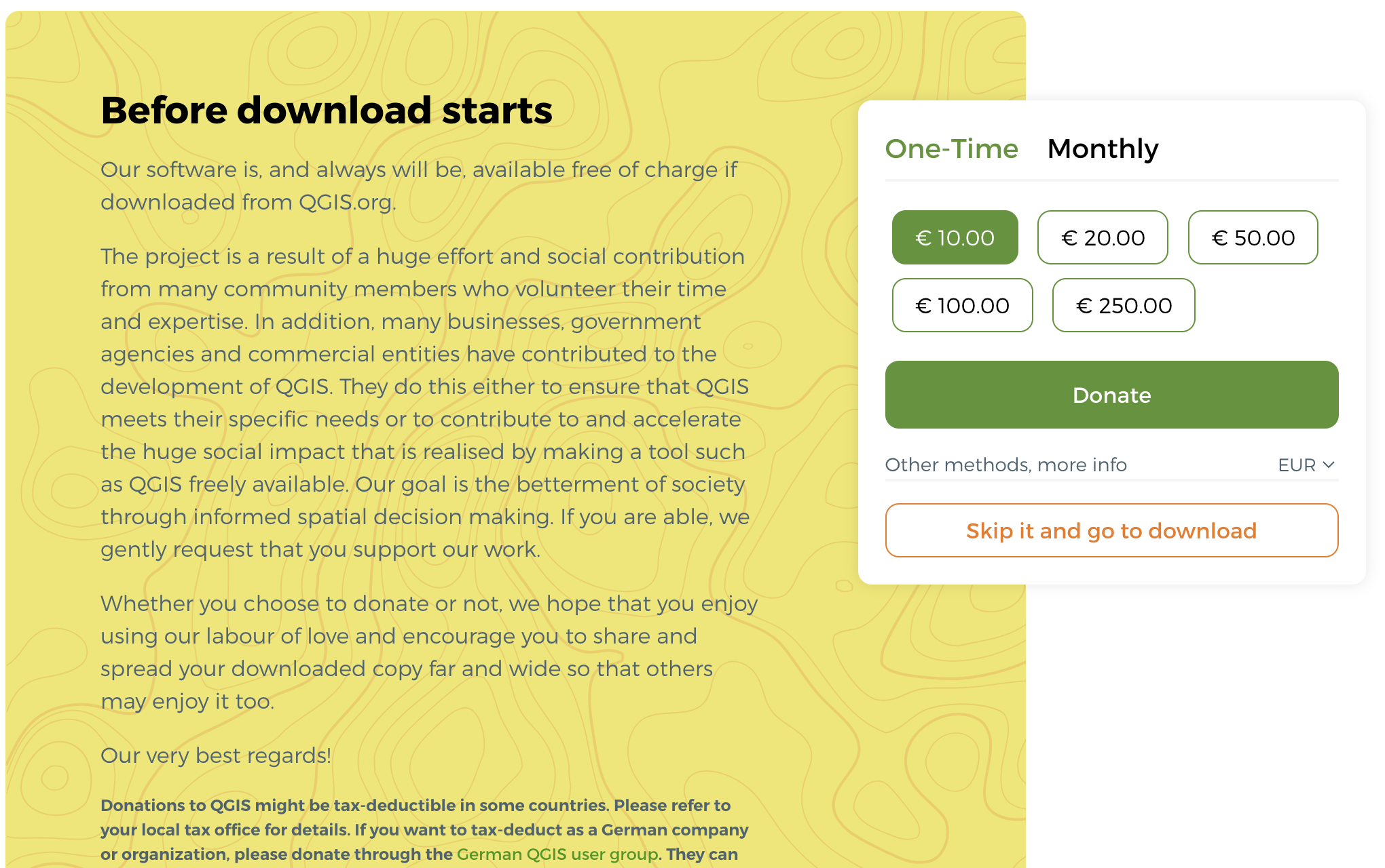 Скорее всего после перехода по ссылке вы увидите форму для отправки пожертвования в фонд развития программы. Здесь вы можете просто нажать на кнопку Skip it and go to download, чтобы перейти к загрузке установщика.