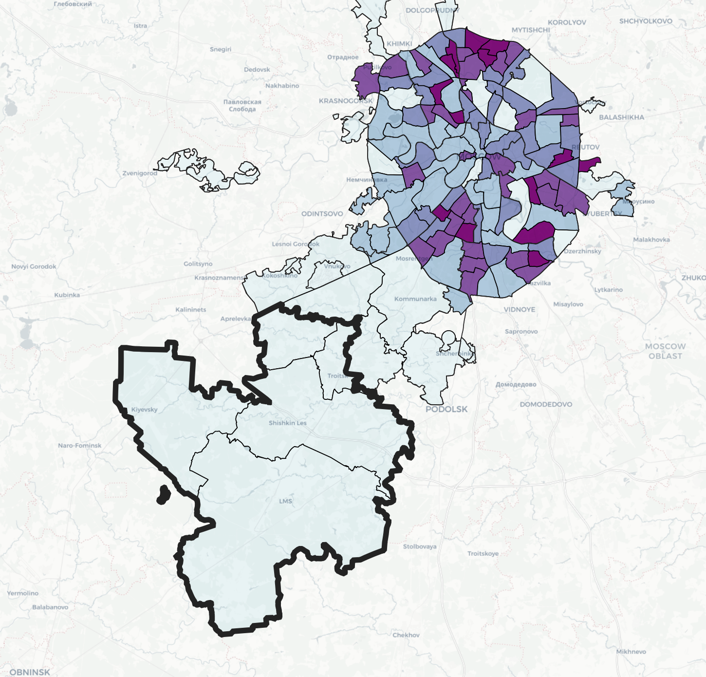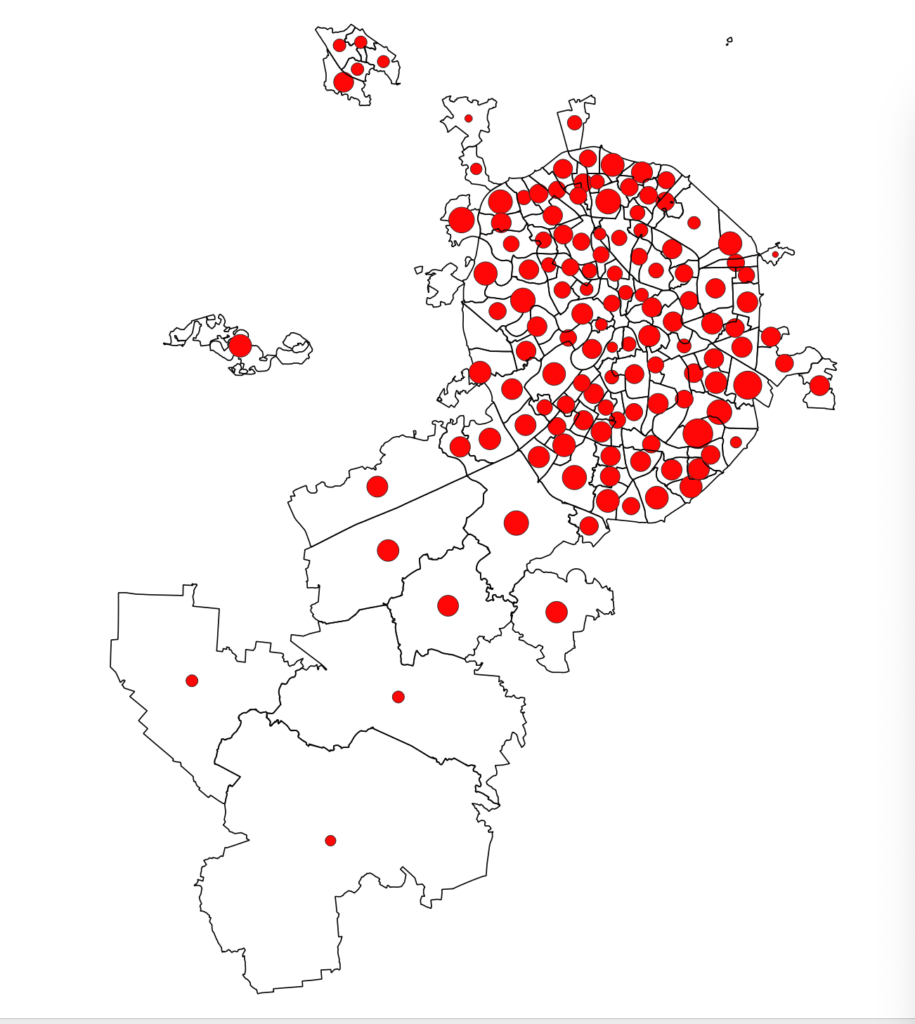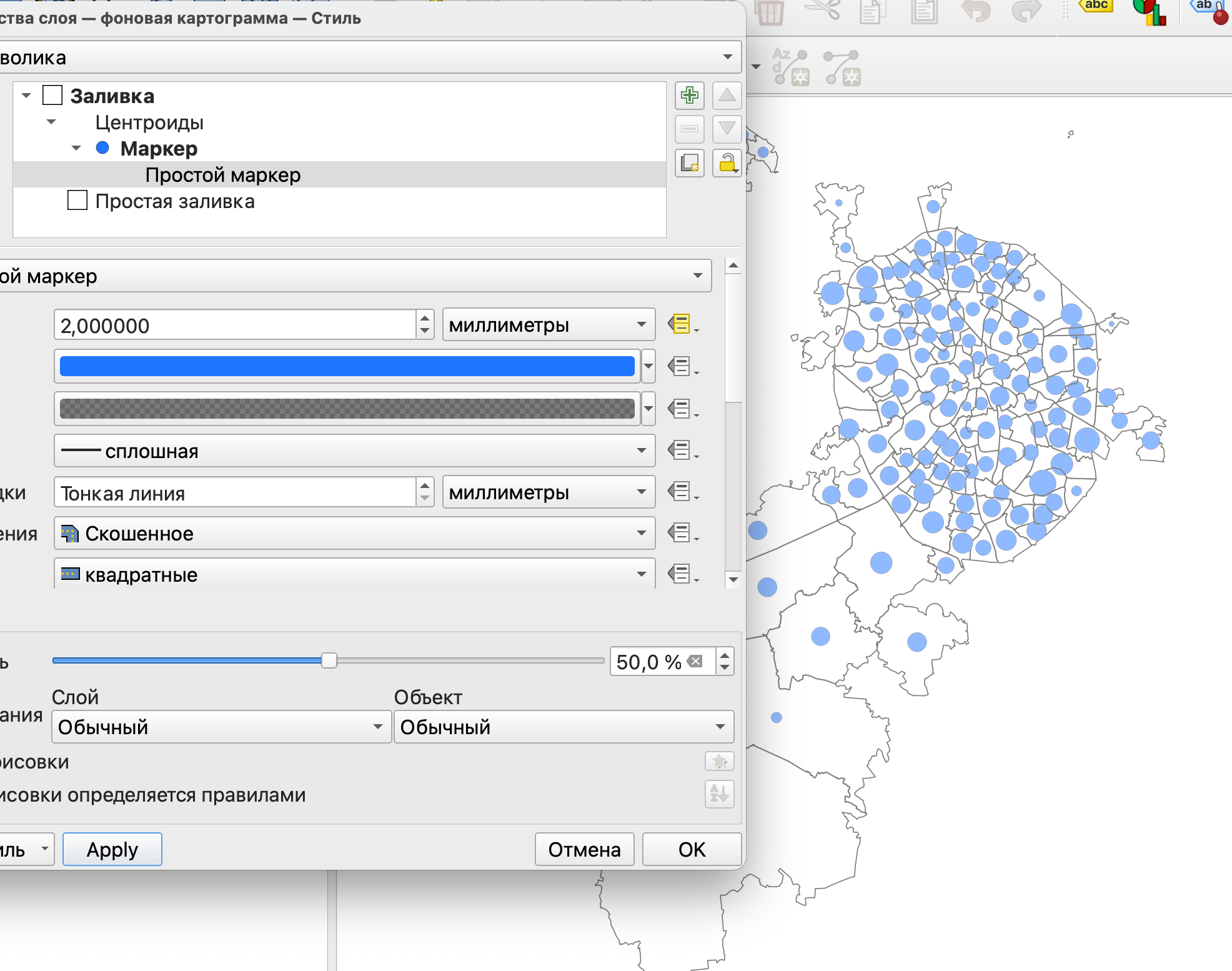После применения изменений вы увидите на карте ваши символы, размер которых будет пропорционален количеству населения в муниципальном округе.