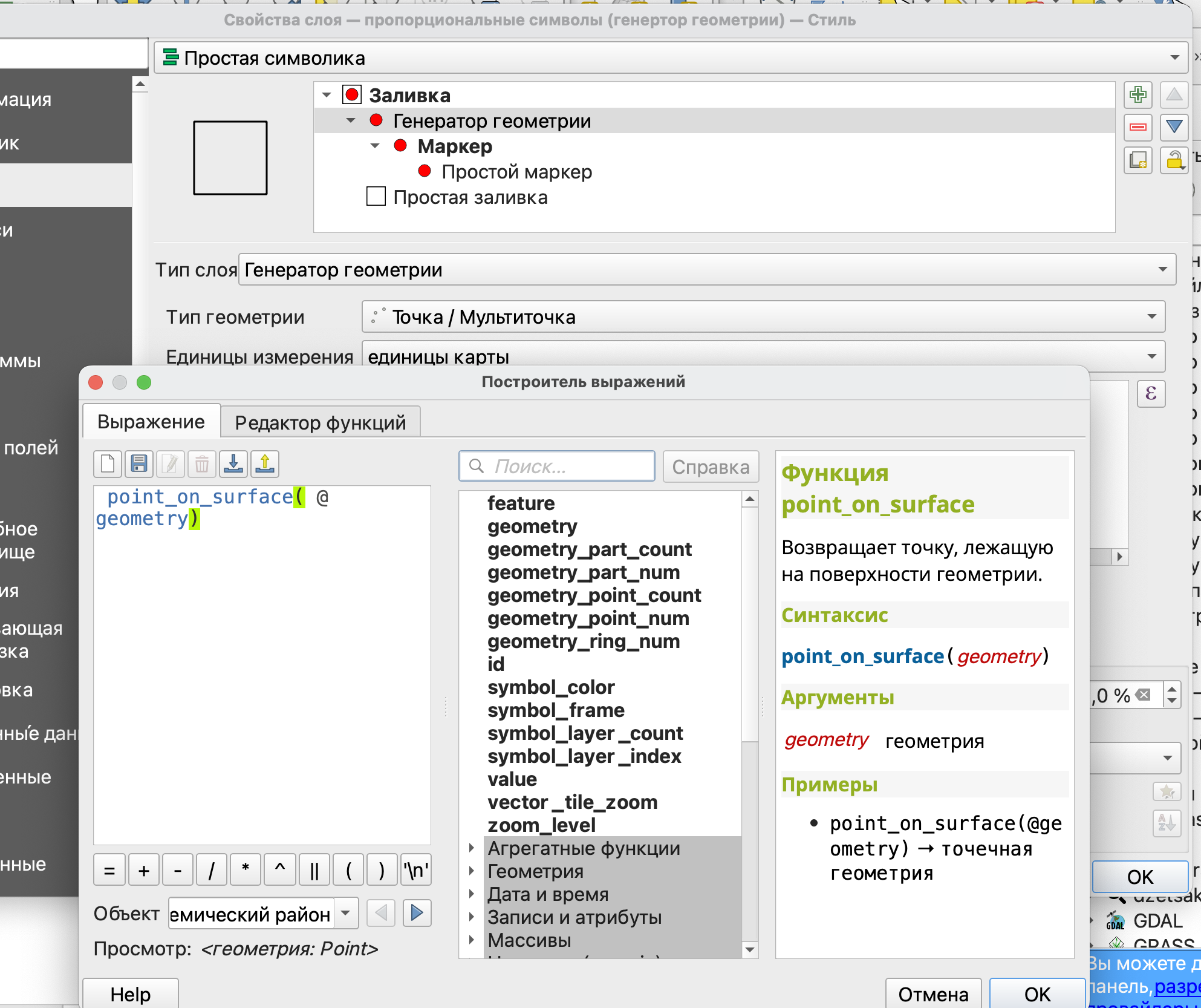 Для второго варианта карты пропорциональных символов воспользуемся Генератором геометрии.