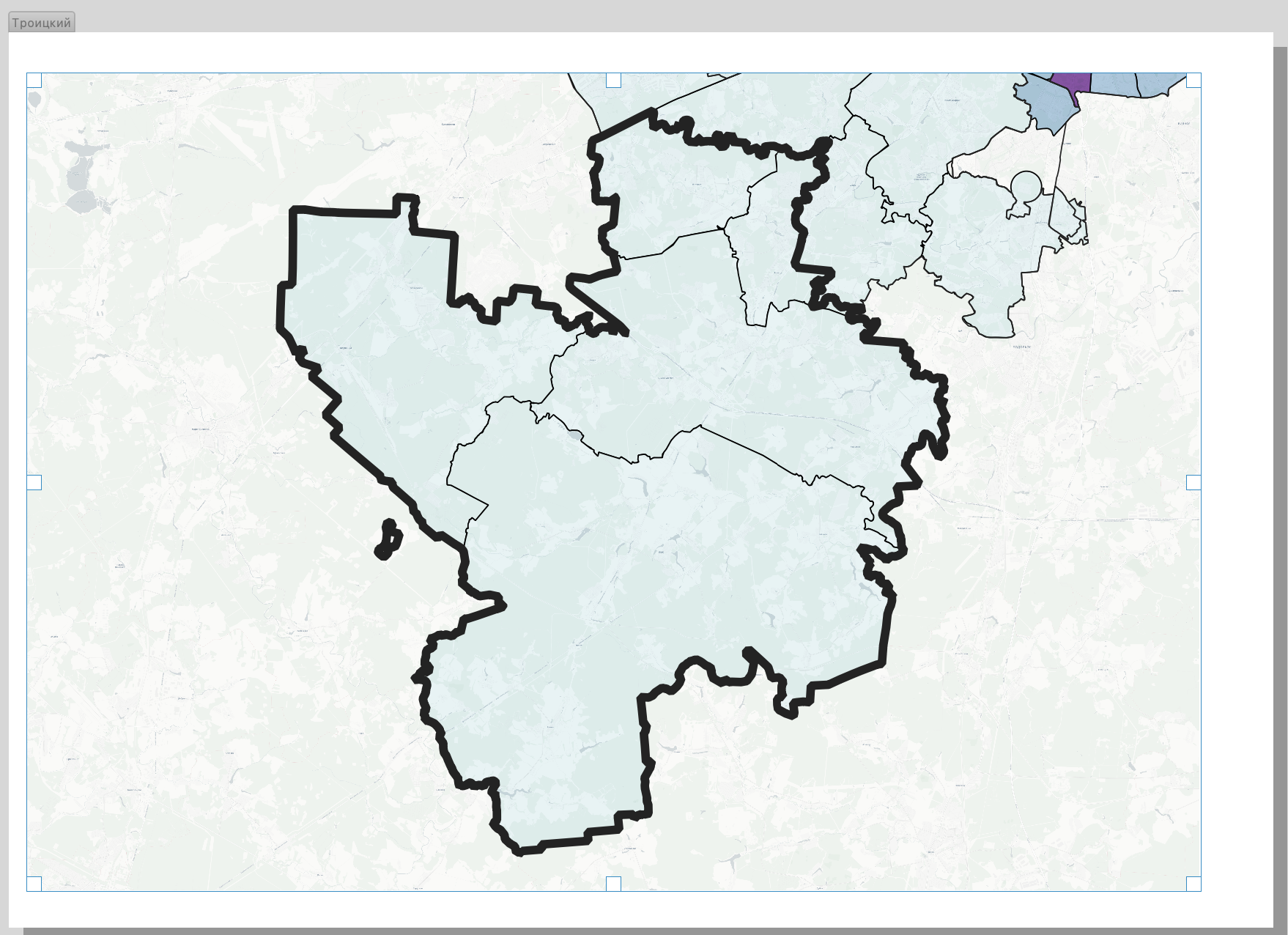 Для того, чтобы создать карту населения по административным округам Москвы добавим в проект слой с ними (файл ao.geojson). Объекты этого слоя будут нужны нам в первую очередь для того, чтобы создать страницы атласа и настроить некоторые элементы отображения.
