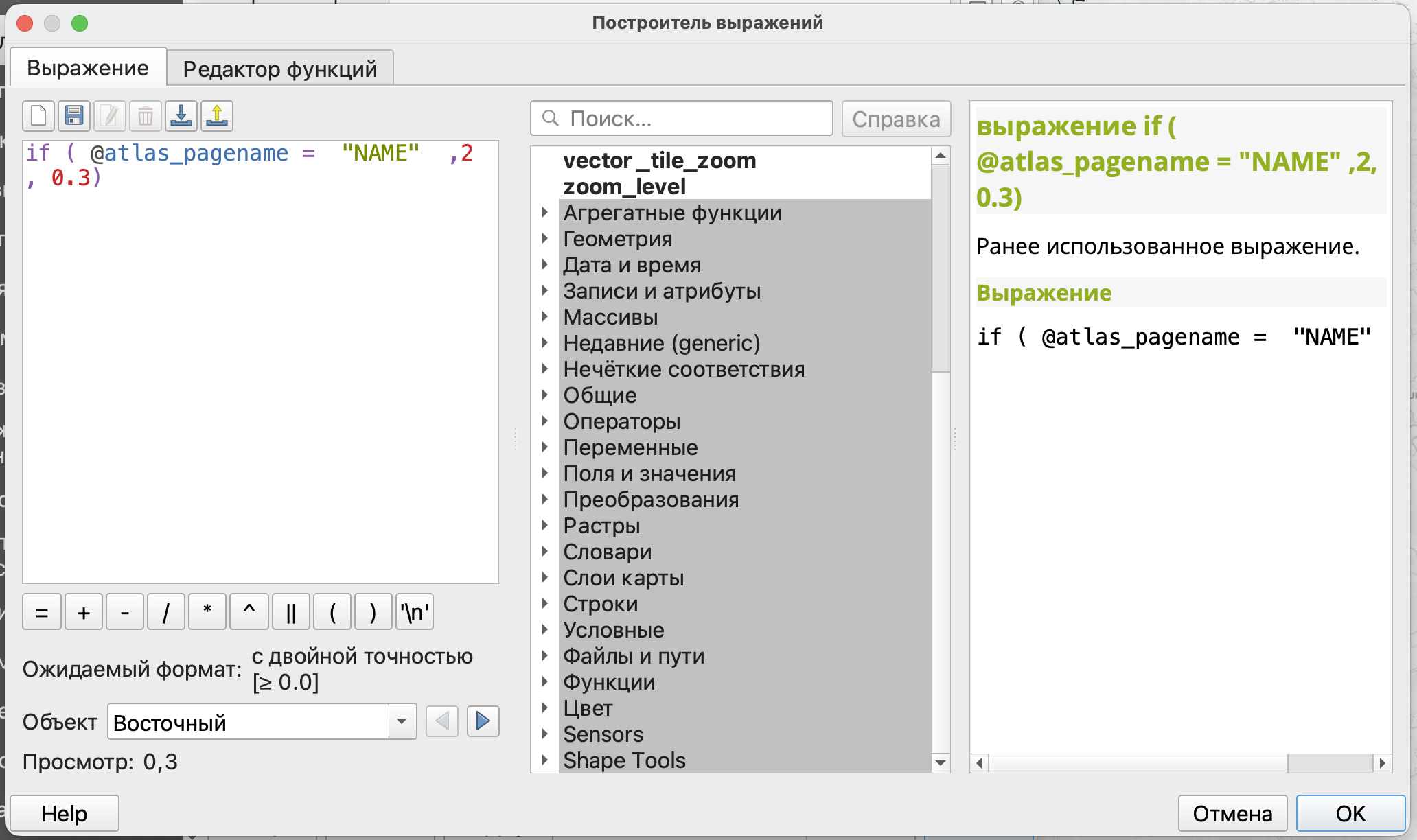 Вернемся в основное окно программы, и настроим толщину обводки на основе выражения: