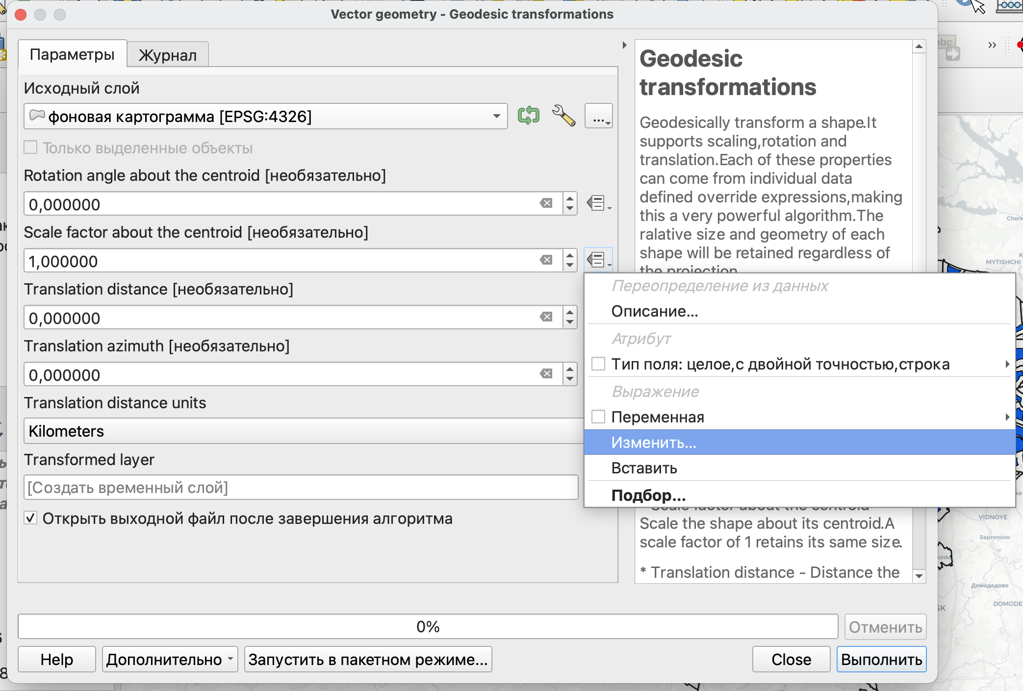 Для изменения формы объектов воспользуемся инструментом Geodetic transformations из модуля.