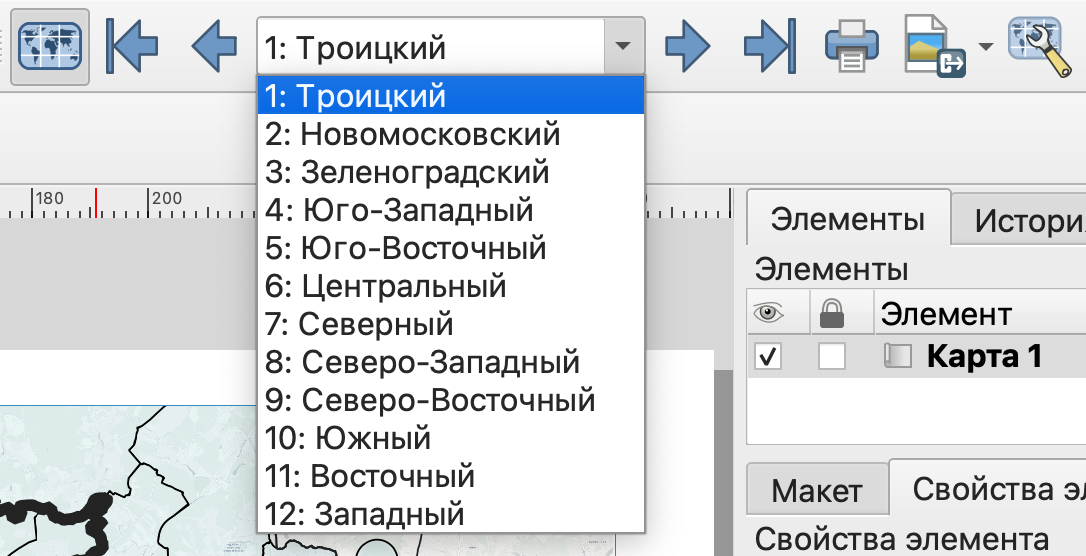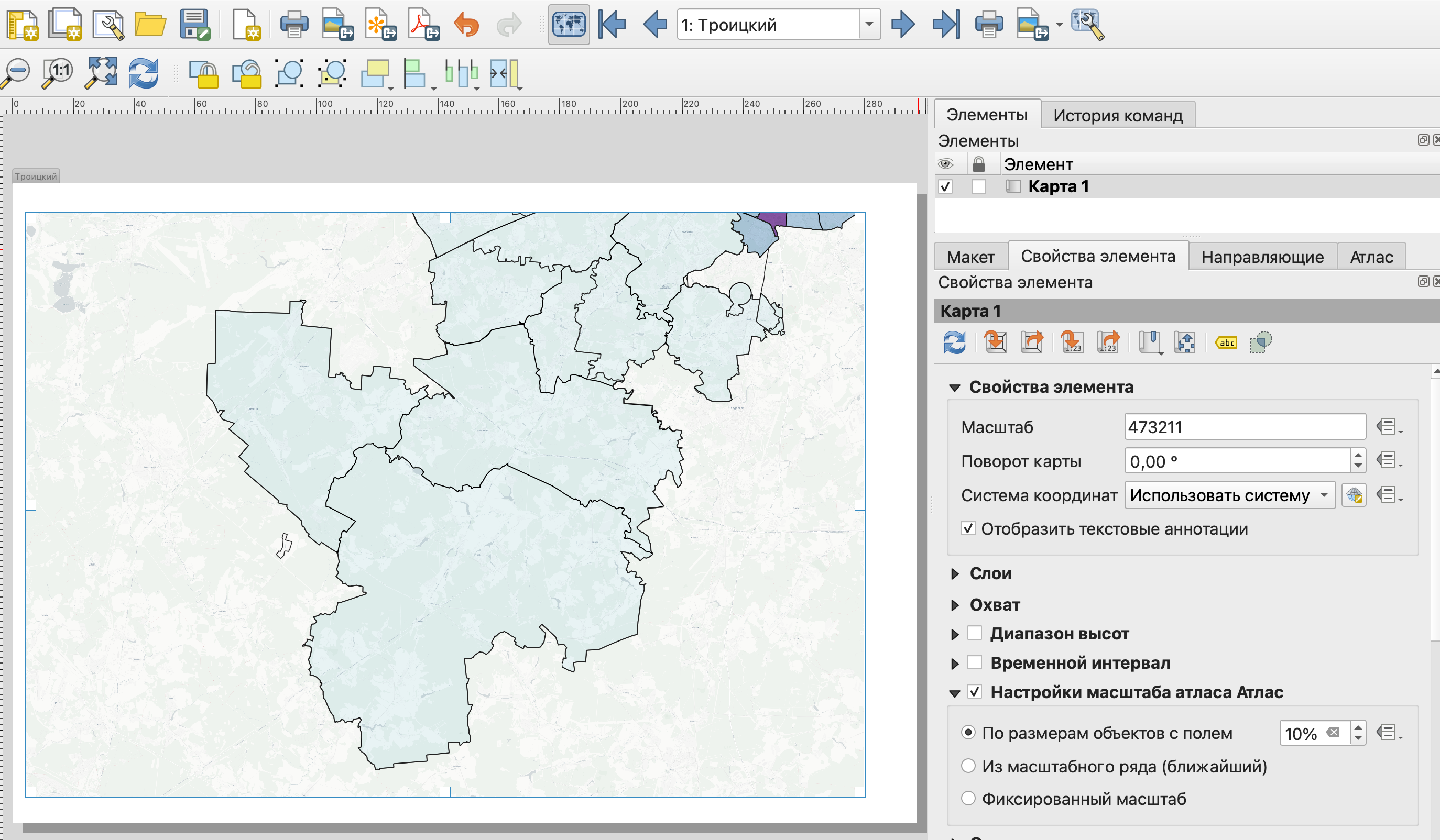 Для того, чтобы сделать из макета карты атлас, то есть серию карт нам необходимо условие группировки объектов, в качестве которого будет выступать административный район.