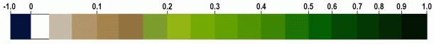 NDVI (Normalized Difference vegetation index) - самый известный индекс и ему больше всего доверяют. NDVI прост для вычисления, имеет самый широкий динамический диапазон из распространенных ВИ, и лучшую чувствительность к изменениям в растительном покрове. Он умеренно чувствителен к изменениям почвенного и атмосферного фона, кроме случаев с бедной растительностью. Для того чтобы просто посмотреть на растительность на снимке с количественной точки зрения, нет ничего лучшего, чем NDVI, только если вы не имеете территорию с бедной растительностью.