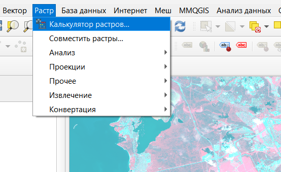Расчет индекса можно осуществить с помощью Калькулятора растров.