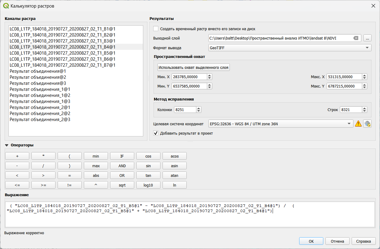 Расчет вегетационного индекса