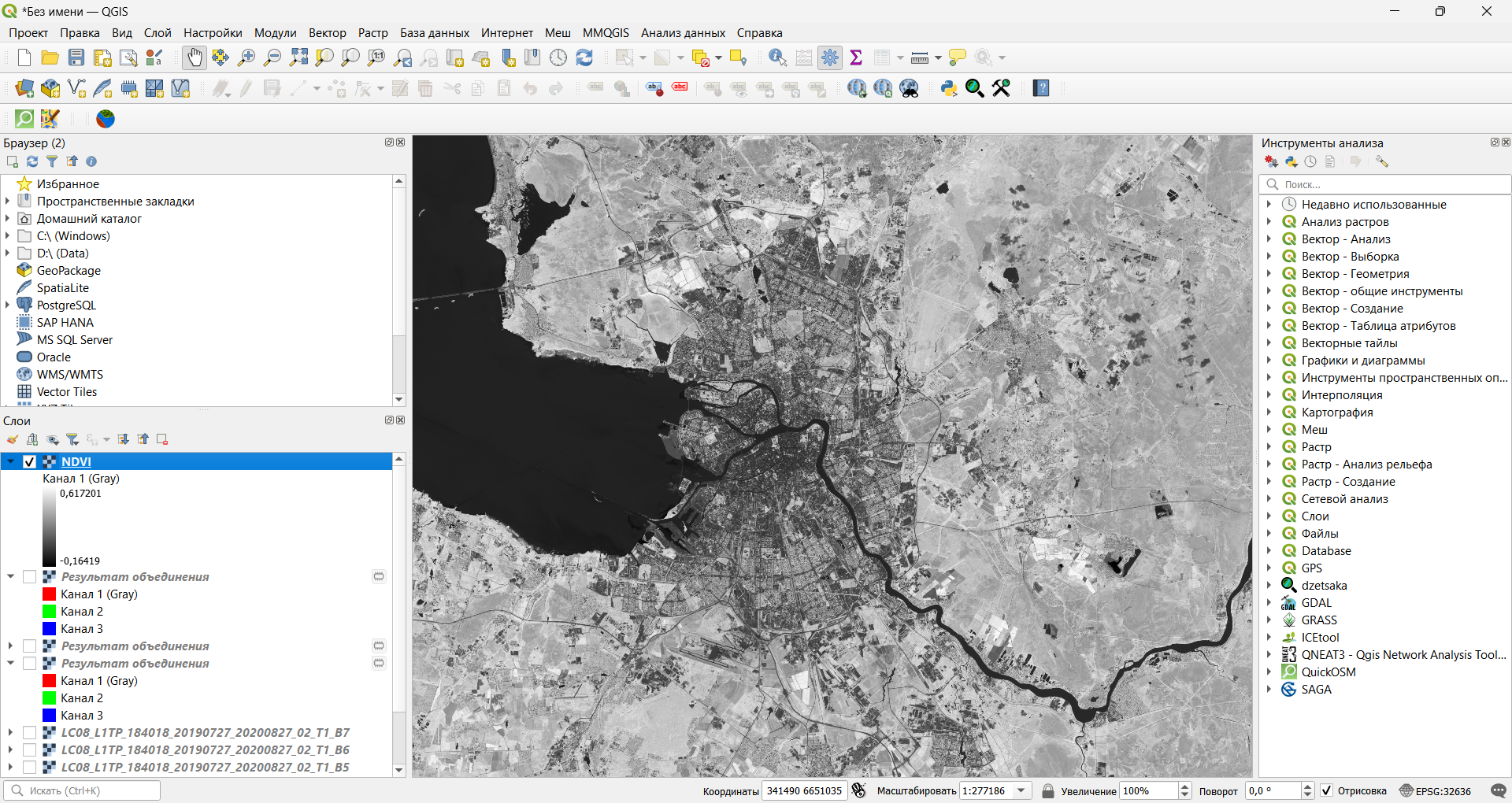 Расчет индекса NDVI